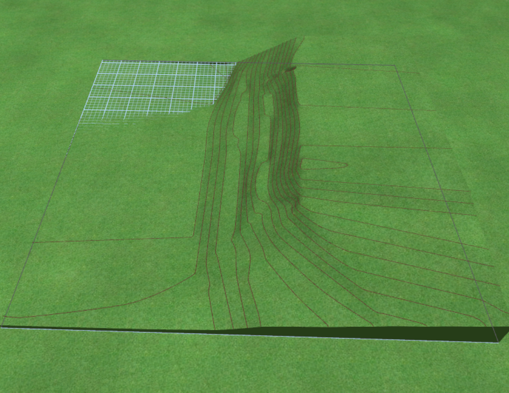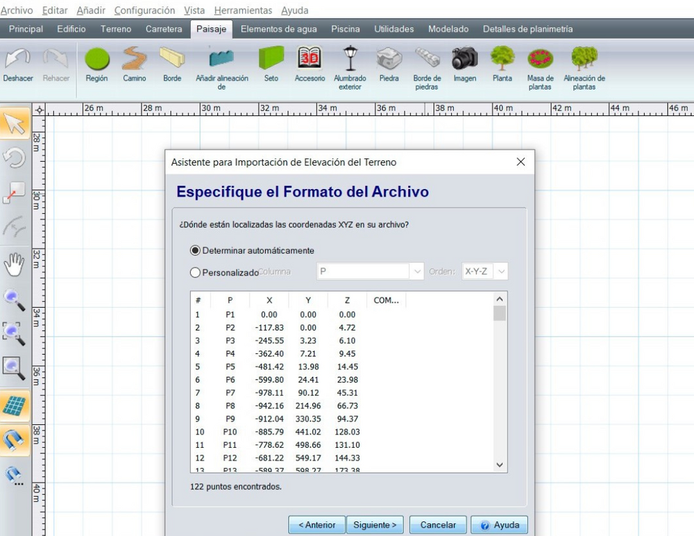 Além da importação da planimetria, também poderá importar no Landscape3Design arquivos CSV de elevação do terreno, obtidos com o Moasure ONE, obtendo automaticamente as linhas de contorno e as curvas de nível.