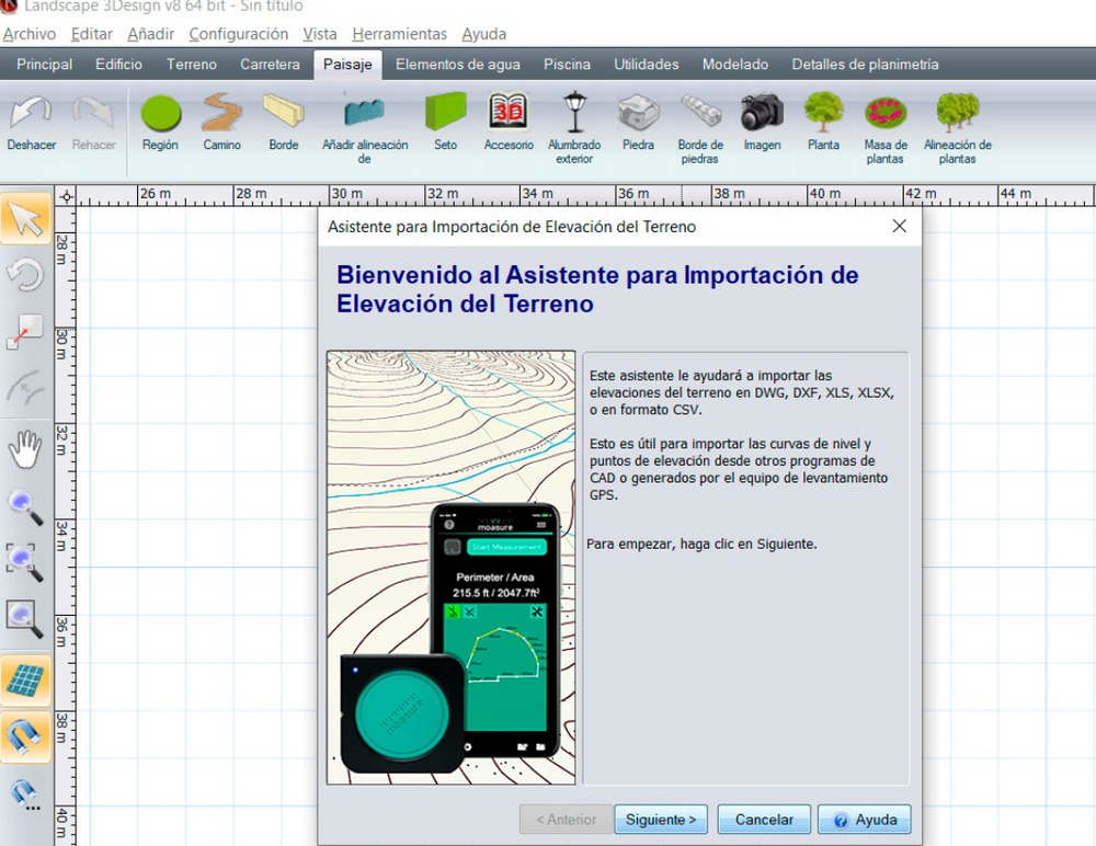 No Landscape3Design também encontrará um procedimento de importação direta que lhe permitirá dispor de todos os dados obtidos com o Moasure ONE de uma forma fácil e simples.