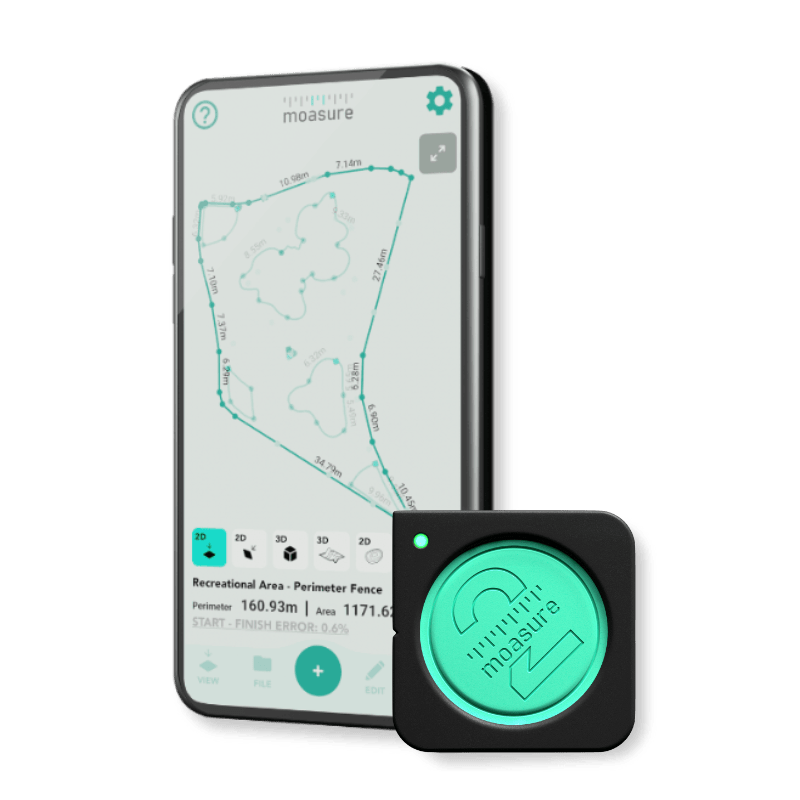 O Moasure é a primeira ferramenta de medição do mundo baseada no movimento. Concebida com sensores inerciais de alto desempenho, estes são integrados num dispositivo que cabe na palma da sua mão.